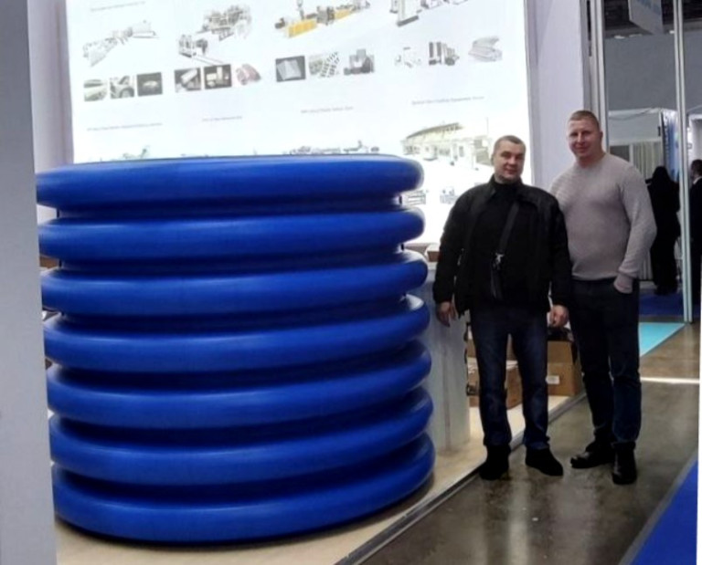 Одним из популярных экспонатов на стенде JWELL на выставке RUPLASTICA стала гофрированная труба большого диаметра. Игорь Габузов, руководитель экструзионного направления ООО "Веллтех", представляющего интересы JWELL в России и странах СНГ, рассказывает о характеристиках данного изделия: "2-слойная гофрированная ПЭ-труба сегодня успешно приходит на смену бетонным и стальным трубам в сфере хозяйственно-бытовой и ливневой канализации, ведь такие изделия гораздо легче, не подвержены коррозии и пропускают большой поток воды. Внешний диаметр изделия - 1,96 м, внутренний - 1,6 м. JWELL не только сконструировал линию для экструзии таких труб, но и оснастил ее автоматическим устройством для смены полуформ. Подобные линии JWELL уже успешно функционируют в Австралии, Бразилии, на Филиппинах, надеемся ими заинтересуются и российские производители труб".